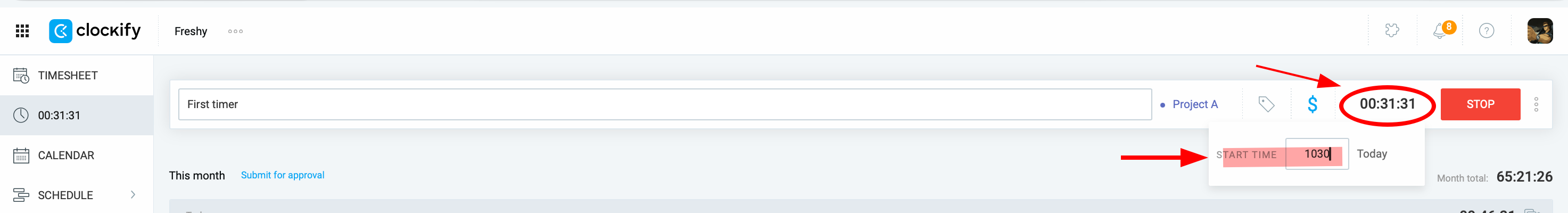People like me sometimes will be in the position when they missed current timer tracking switch in timer mode and they need to modify that previous tracking end time. Some will have it rarely and some more often. And what they have to do to fix it, is this: